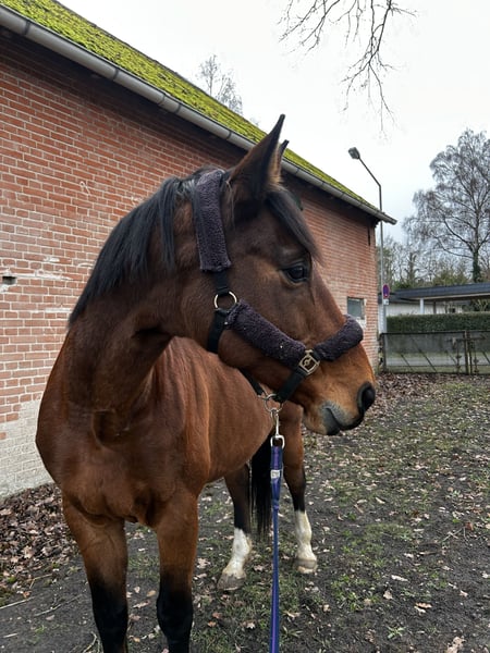Zangersheide merrie, 15 jaar, volledig ongeschonden. Gezond, stevig en hoefbevij, staat het liefst 's nachts in de stal en overdag buiten. Geen allergieën of bekende ziekten. Kan in alle drie de gangen gereden worden en gaat het liefst de natuur in.