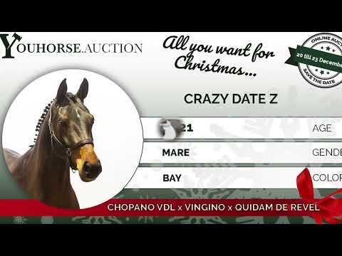 Crazy Date Z ist eine athletische Stute mit viel Blut, Reflexen und natürlicher Schärfe. Sie bewegt sich leichtfüßig und zeigt eine moderne, schnelle Springtechnik. Sie ist schnell im Absprung, denkt mit am Sprung und springt mit natürlicher Vorsicht. Ihre Mischung aus Sprungkraft, Einstellung und Leichtfüßigkeit macht sie zu einem vielversprechenden Nachwuchstalent mit großem sportlichem Potenzial. Crazy Date Z stammt von Chopano VA x Vingino ab. Züchter des Hengstes Chopano VA ist Chopano VA, ein Sohn von Chopin VA (1,60 m), direkt abstammend vom einflussreichen Spitzenvererber Casall. Die Mutter Easy Date (Vingino) kommt aus einer bewährten Sportfamilie. Großmutter No Date (Quidam de Revel) hat mehrere internationale Springpferde hervorgebracht, darunter Costa Date (1,55 m, CSI4*) und One Clarimo (1,45 m international). Weiter in der Mutterlinie finden wir Bessemeinds Casino, einen AES-, Zangersheide- und KWPN-approbierten Hengst, der auf 1,60–1,65 m Niveau erfolgreich war. Diese Familie hat bereits zahlreiche Pferde hervorgebracht, die von 1,40 m bis 1,60 m erfolgreich sind, was ihre herausragende sportliche Zuverlässigkeit unterstreicht. Crazy Date Z verbindet einen modernen Springstil mit einem sehr starken genetischen Hintergrund, basierend auf bewährten 1,60 m Leistungen und zugelassenen Hengsten. Eine Qualitätsstute mit Einstellung und einer Mutterlinie, die sich auf höchstem Niveau bewährt hat.