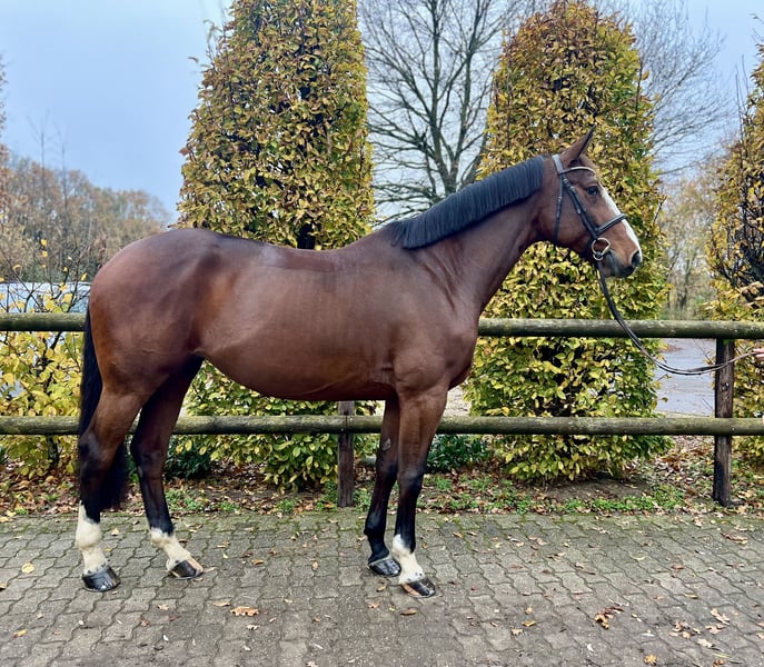 For sale is a 7-year-old, 16.1 hh, well-behaved mare. (D‘Aganix 2000 Z x Acorado I) Dikira is a kind, alert mare with a natural “go” attitude. She is well-mannered and nicely trained in handling. She always wants to do everything correctly and prefers to jump on the other side of the obstacle. At competitions, she remains calm and has already placed up to 110 cm, with clear rounds up to 120 cm. Although Dikira is quite “robust,” we would still describe her as an “amateur” or “girl’s horse.” She is always well-behaved in the arena, out on the cross-country course, or in the outdoor paddock. Current videos are available upon request. Dikira is regularly vaccinated, dewormed, and farrier- and loading-friendly. Test riding is not an option. A fee of €20 applies for trial rides. Inquiries only via WhatsApp or by phone at: +49 1522 8810407