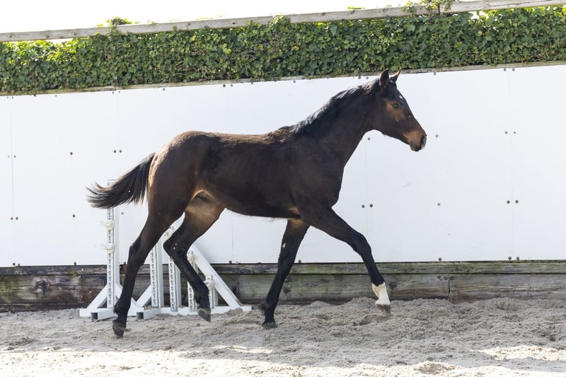 Groot, modern jaarling met veel bloed en uitstraling. Laat nu al zien dat hij veel afdruk heeft en licht van de grond komt voor zijn formaat. Compleet gebouwd en atletisch in beweging. Een paard met veel potentie, waarvan je het gevoel hebt dat hij zich richting de toekomst kan onderscheiden op niveau. Vader Chacco-Blue 1.60m Grand Prix Eén van de beste verervers wereldwijd met uitzonderlijk veel 1.60m paarden en internationale toppers. Moeder Centuria 7 (v. Cento 1.60m) 1.60m springen Moederlijn / stam Grootmoeder Corlida (v. Cornet Obolensky 1.60m) – 1.60m springen Overgrootmoeder Salida (v. Calido I) – Calida – 1.55m – Centuria 7 – 1.60m – Carry Me – 1.40m – Cool Boy 17 – 1.30m Verder in de stam: – Cent Blue – 1.55m – Vertical Limit – 1.60m – Freedom – 1.50m – Spartacus D – 1.45m – Game Boy 63 – 1.40m – Chica Pru – 1.40m – Action Sandra PS – 1.35m Goedgekeurde hengsten in de lijn: – Chacco-Blue – Cento – Cornet Obolensky – Calido I Zeer sterke internationale sportstam met veel 1.50m–1.60m paarden.