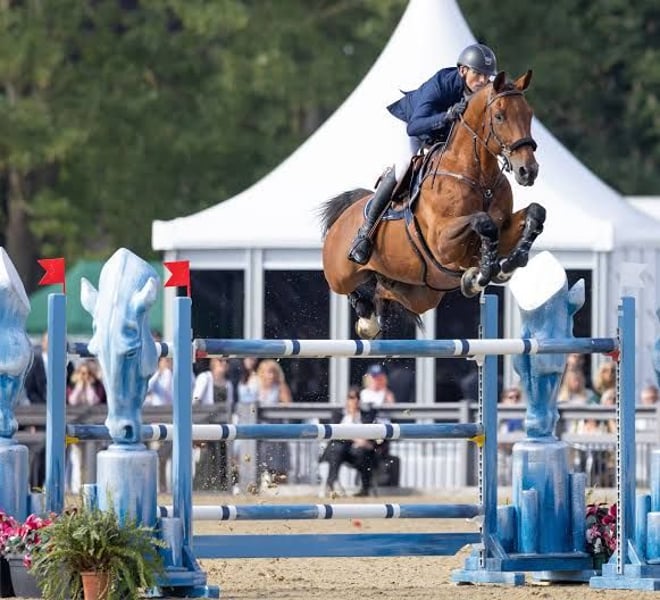 Name: Bonaparte van de Molenaarelst Z Date of Birth: 04/05/2025 Gender: Colt Studbook: Zangersheide Origin: Bond JamesBond de Hay × Gismo Z × Esteban × Cavalcadour XX A Line Bred for Performance Sire: Bond JamesBond de Hay Bonaparte is sired by Bond JamesBond de Hay, a Selle Français stallion who competed up to 1.65 m with Gregory Wathelet. Known for his size, power, and commanding presence, he combines exceptional performance ability with the influential bloodlines of Diamant de Semilly and Kannan. His progeny inherit carefulness, scope, and the modern sport blood needed for top-level competition. Dam Line: Kiléna du Cowa His dam, Kiléna du Cowa, is by Gismo Z, an AES-approved stallion who competed successfully at 1.60 m. Further back, the lineage includes the influence of Esteban and the Thoroughbred Cavalcadour XX, both contributing refinement, balance, and stamina. This combination results in a dam line that offers both athletic performance and excellent rideability. Type & Athletic Promise Bonaparte van de Molenaarelst Z is a colt with modern sport qualities: correct conformation, athletic movement, and sharp reflexes. His pedigree combines proven Grand Prix potential with elegance and rideability, providing all the tools for future development in sport. Bonaparte placed fourth at the Flanders Foal Championship (BWP). Why Choose Bonaparte? • Colt sired by a 1.65 m Grand Prix stallion • Strong dam line with direct links to 1.60 m performers • Modern sport type: scope, reflexes, and balance • Attractive investment for sport and breeding Bonaparte van de Molenaarelst Z is a colt bred for the future of international showjumping—powerful, modern, and with proven bloodlines to support his development.