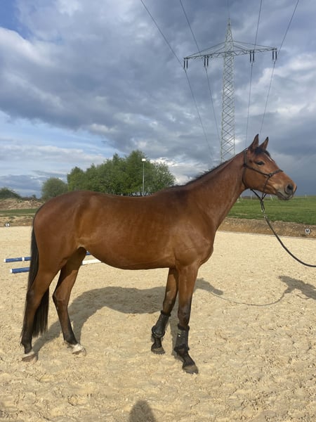 Versatile Premium Mare For sale is this stylish mare by Syriano, the successful son of Gribaldi. She is out of a premium mare mother by Kaiserkult x King Arthur. This mare impresses with three good basic gaits, absolute confidence, and strong nerves. She always wants to please and learns incredibly quickly. She is very well started under saddle, both in the riding arena and indoors, has already been out on trails, traveled in a trailer, and is familiar with everything a young horse needs to know. She has currently been measured at 165cm. She has always been healthy and is looking forward to a sporty future. Further information and videos available upon request with contact details.